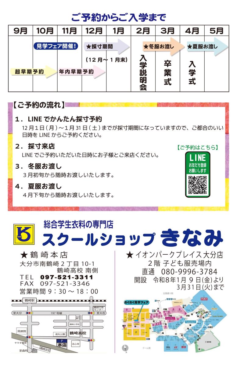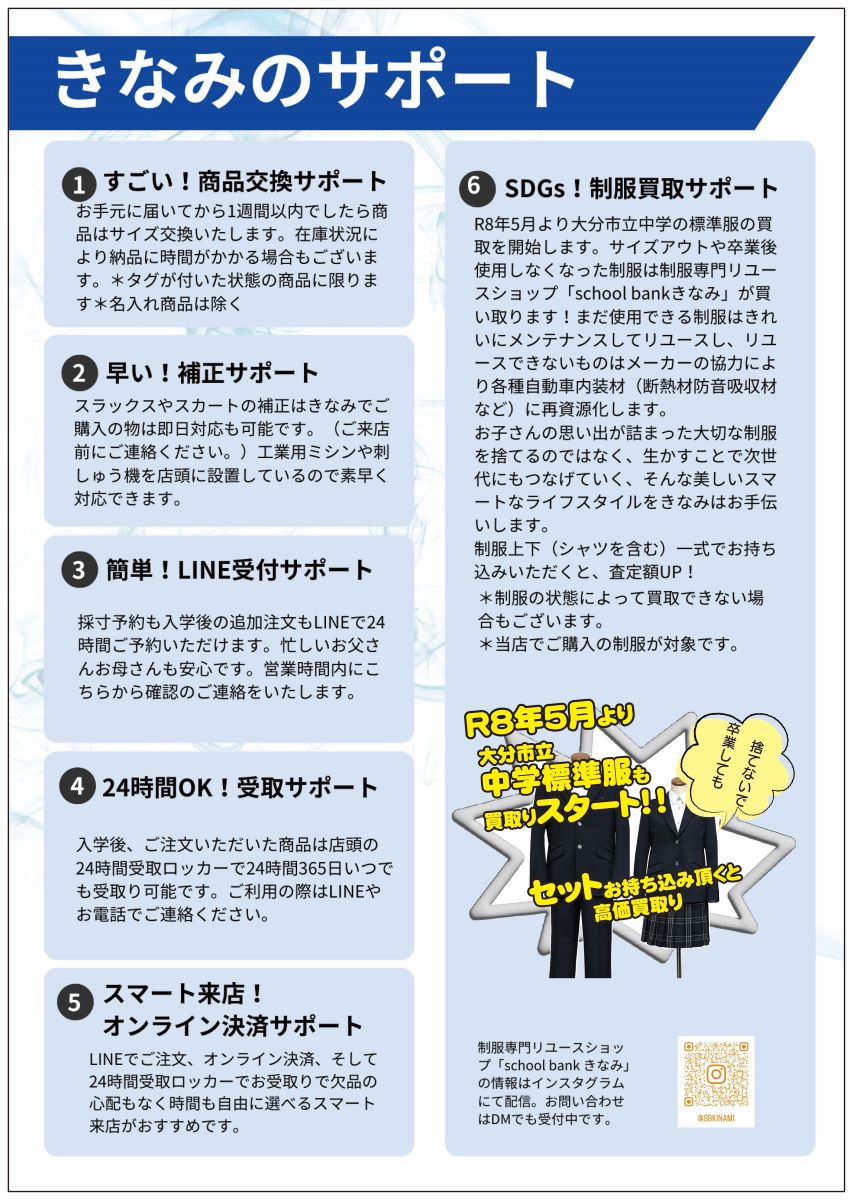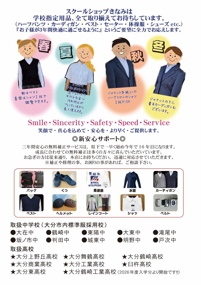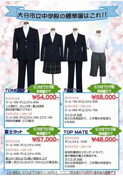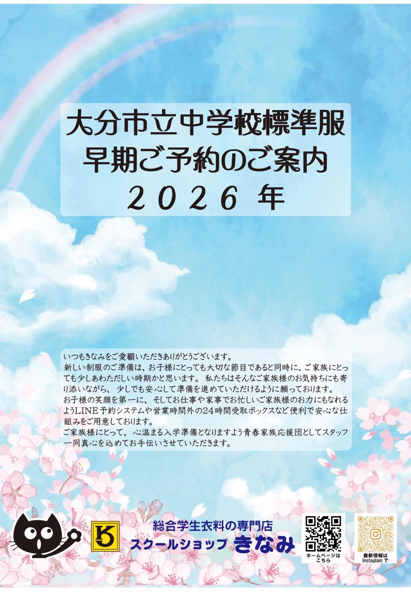 2026年 大分市立中学校標準服 早期ご予約のご案内